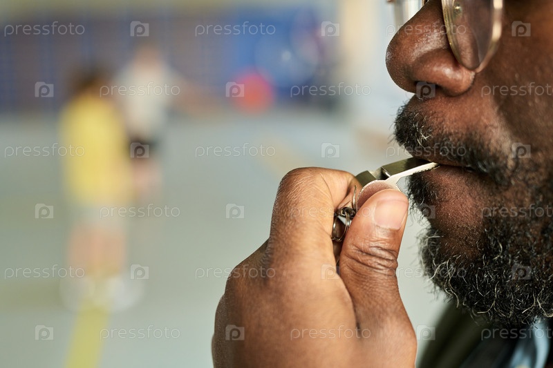 Ближайшее изображение чернокожего мужчины, свистящего во время наблюдения за внутренней деятельностью