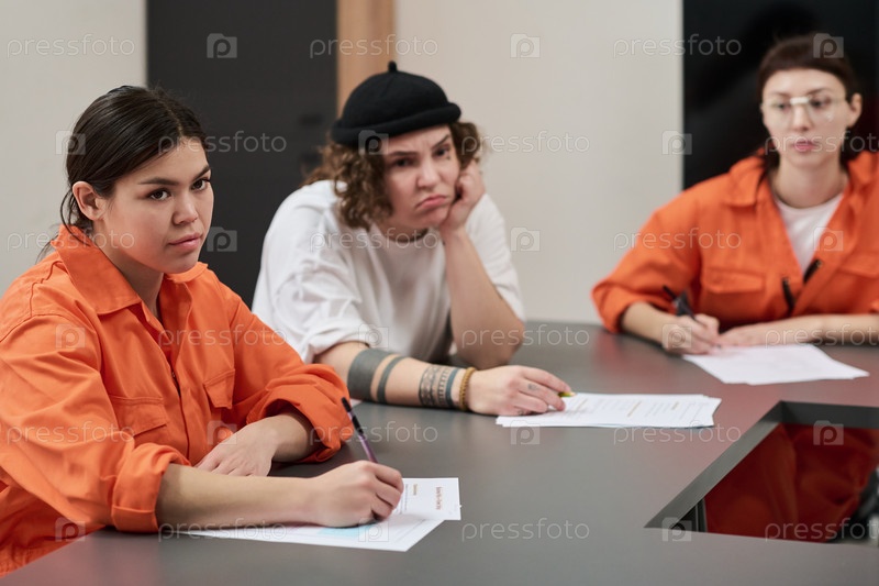 Группа молодых взрослых женщин, посещающих занятия по образованию в тюрьме и делающей заметки