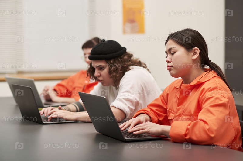 Молодые взрослые заключенные учатся на ноутбуках во время образовательной программы