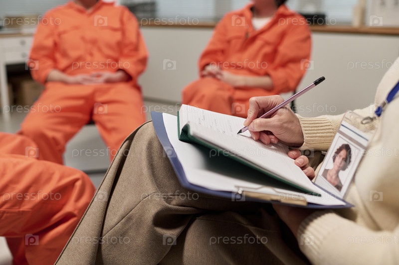 Женщина средних лет делает заметки во время сеанса тюремной терапии