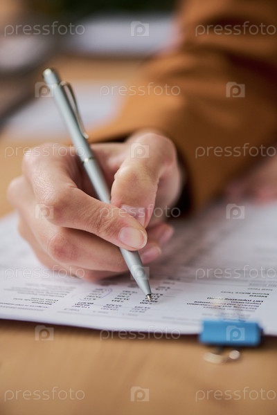 Женская рука заполняет форму ручкой во время процесса подачи заявки