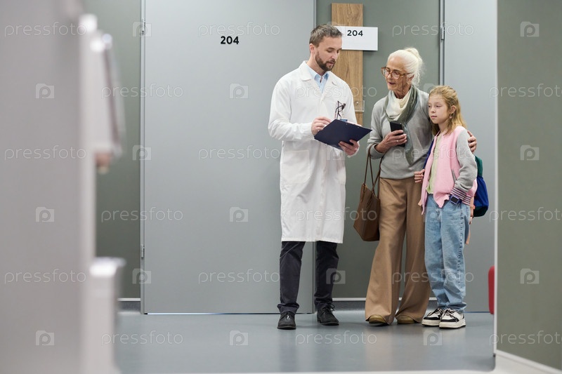 Консультирующий врач Старшая женщина и молодая девушка в больнице