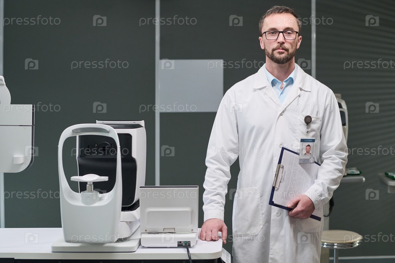 Портрет мужчины среднего возраста Доктор, стоящий в клинике офтальмологии