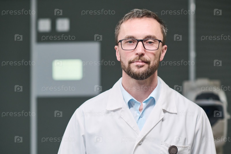 Портрет мужчины с очками, стоящего в клинике