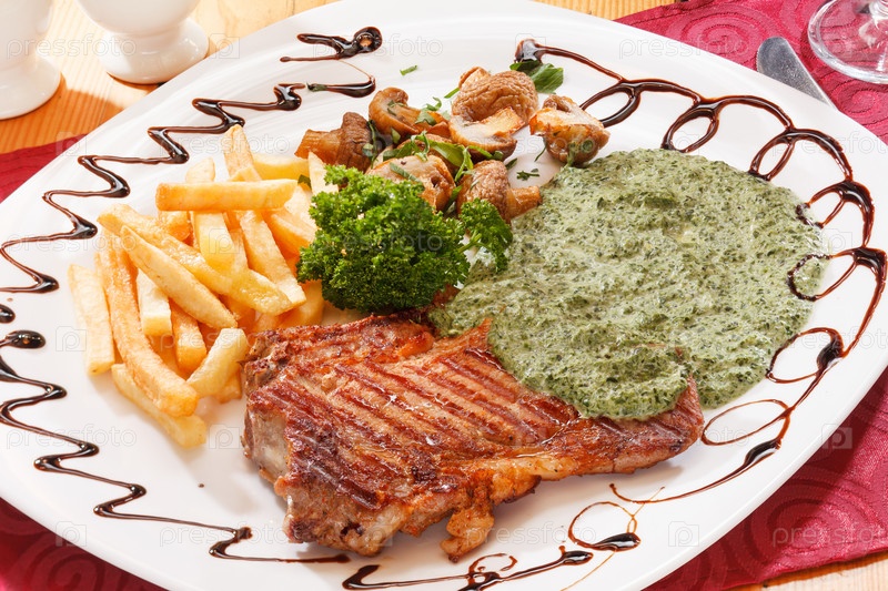 Стейк на гриле с картофелем фри