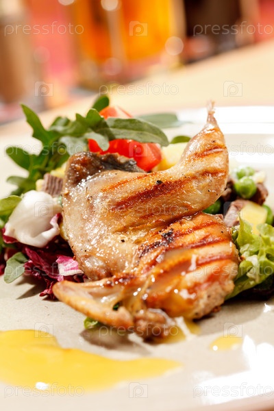 Перепел на мясном салате