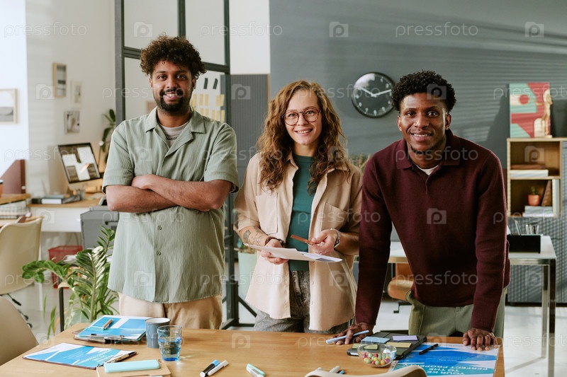Мультиэтнические молодые взрослые сотрудничают во время творческого офисного совещания
