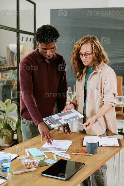 Молодая женщина и молодой чернокожий мужчина сотрудничают над бизнес-проектом