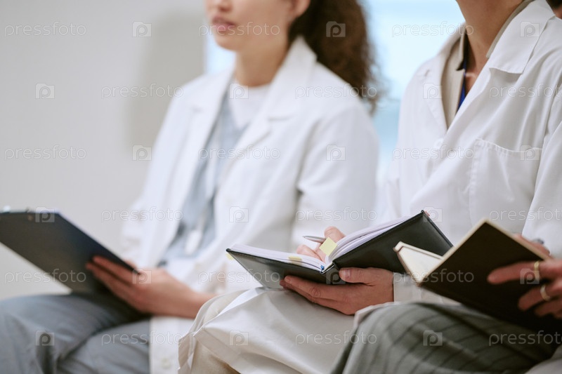 Женщины-врачи делают заметки во время медицинского совещания в помещении