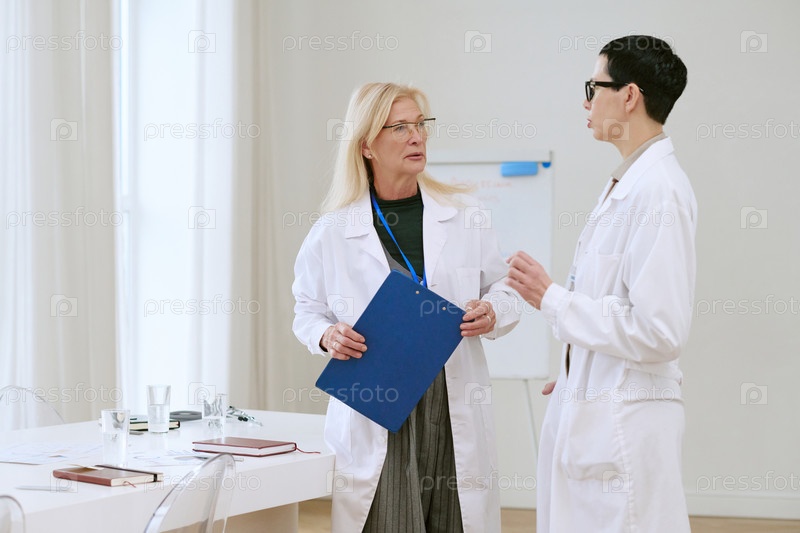 Женщина среднего возраста и молодая взрослая женщина обсуждают исследования