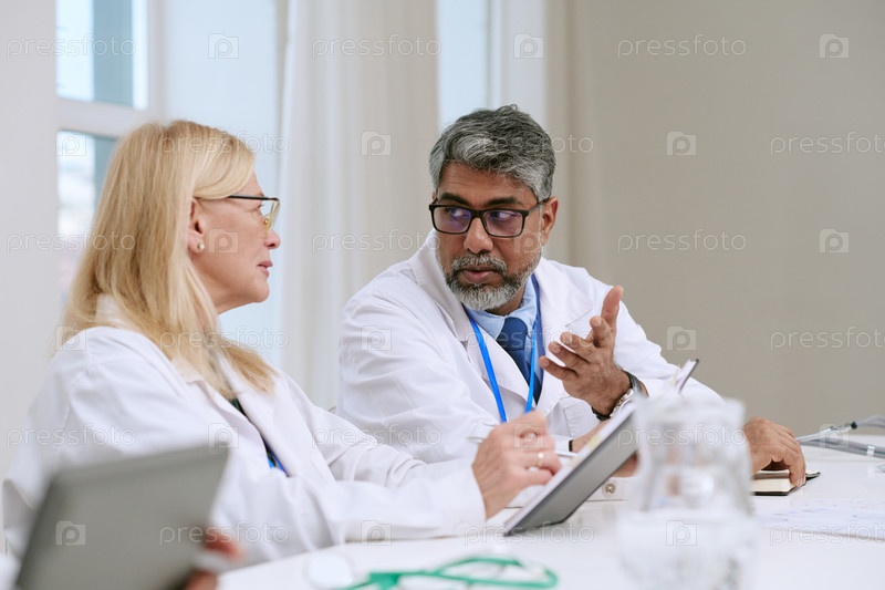Женщина среднего возраста и мужчина средних лет из Южной Азии обсуждают медицинский отчет