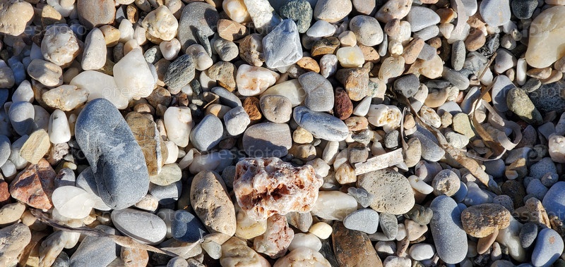 фоне морских камней и гальки. абстрактный естественный фон с камешками. полная рамка многоцветных камней. ближайшие камни различных цветов, форм и размеров