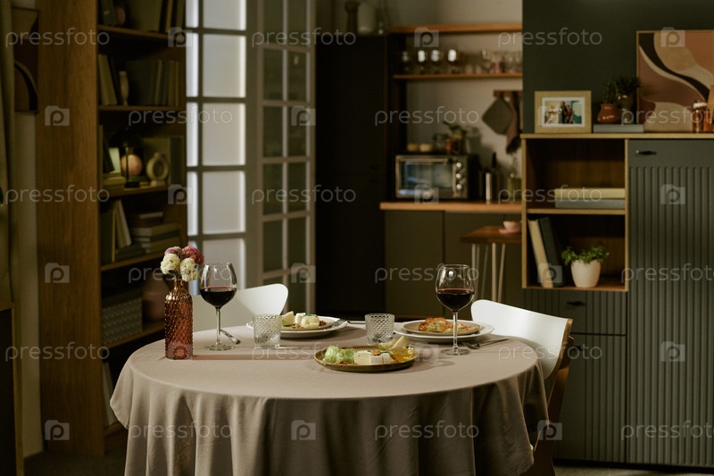 Романтическая столовая конфигурация с винными стаканами и аппетитами для гурманов