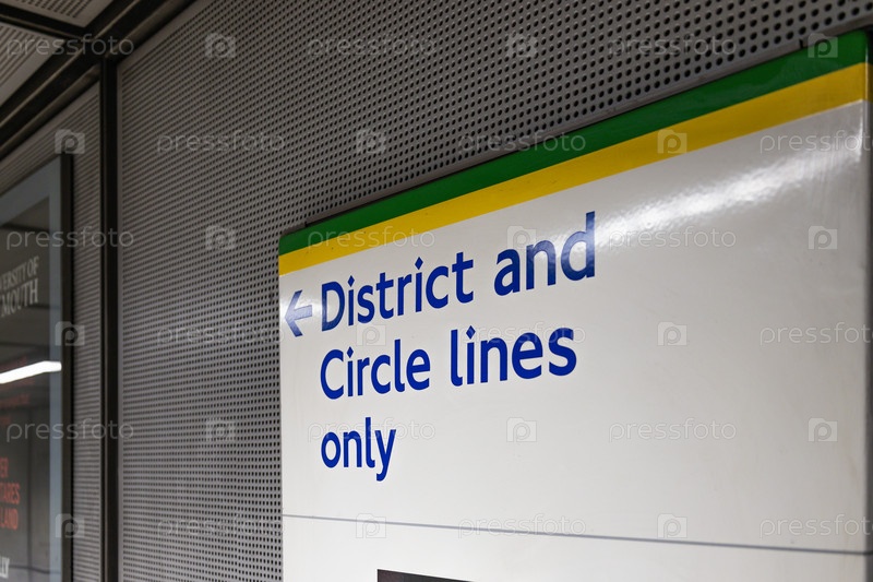 Подземный знак Лондона, отображающий линии района и круг только текст. направленные вывески внутри станции метро Великобритании для навигации на общественном транспорте