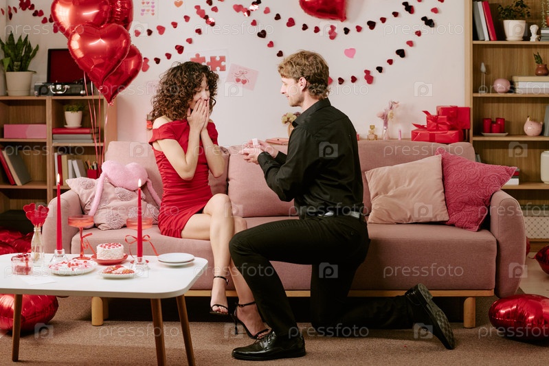 Молодой человек предлагает жениться на удивленной молодой женщине