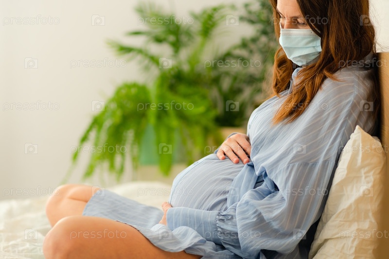 Беременная женщина в медицинской маске