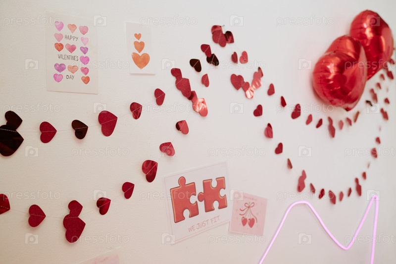 День святого Валентина Сердечные украшения, повешенные на стене Отпразднование романтического праздника