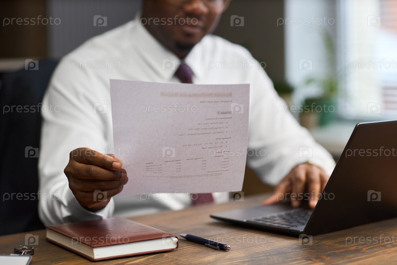 Чернокожий мужчина средних лет просматривает документ, работая директором школы