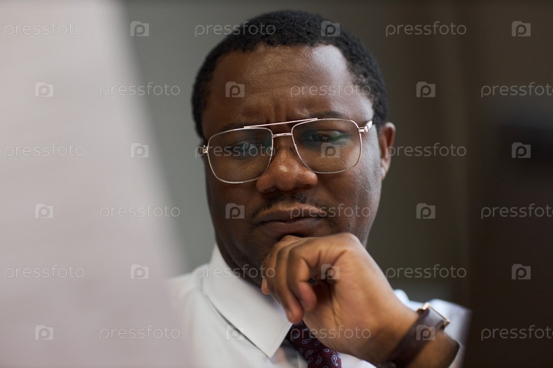 Чернокожий мужчина средних лет просматривает документы в офисе директора школы