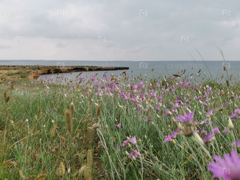 Поле у моря. Xeranthemum annuum сушеный ежегодный Семейство сложных цветов (Asteraceae)