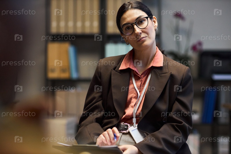 Женщина среднего возраста Директор школы слушает во время встречи