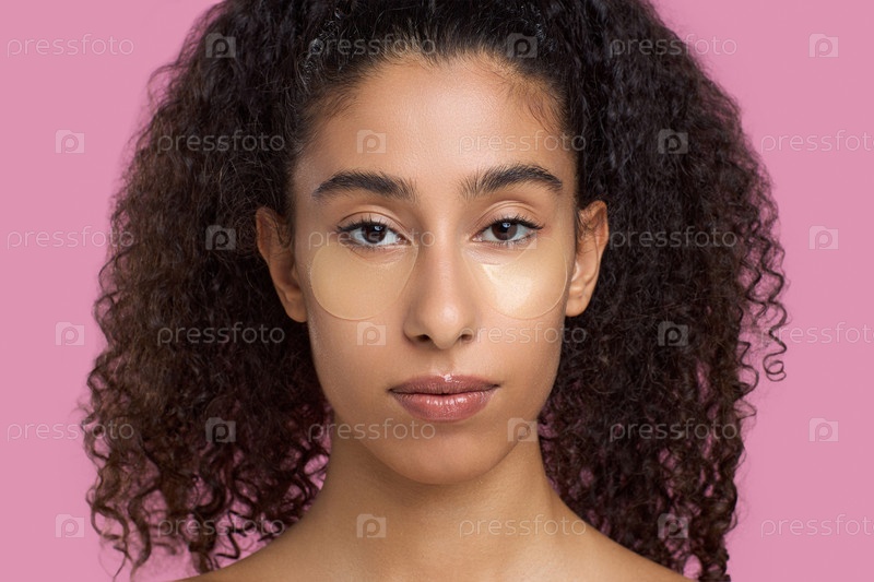 Портрет молодой взрослой женщины с Ближнего Востока, которая применяет пластыри под глазами