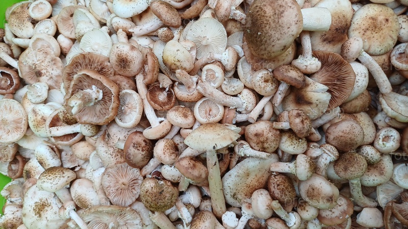 Свежесобранные грибы аккуратно размещаются на поверхности, готовой к приготовлению или продаже на местном рынке