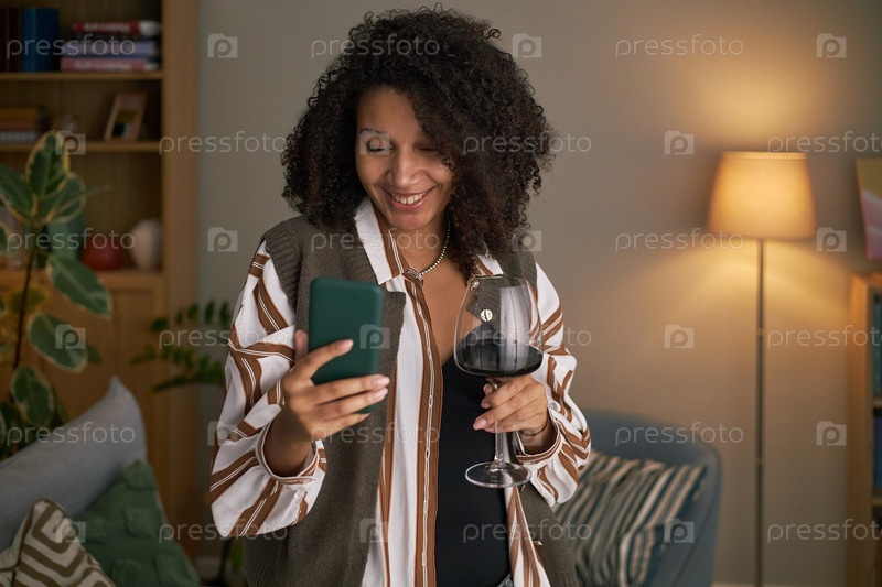 Молодая взрослая чернокожая женщина улыбается во время видеочата во время онлайн-знакомств