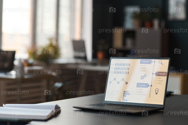 Ноутбук, отображающий панель бизнес-аналитики на рабочем столе Office Laptop в дневное время