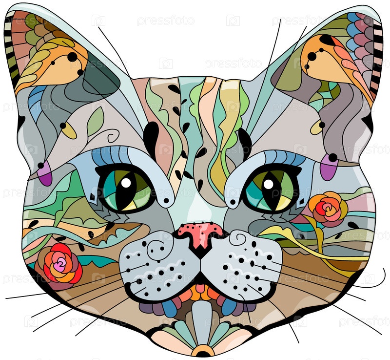 Голова кошки Zentangla стилизована для дизайна футболок, татуировок и других ювелирных изделий