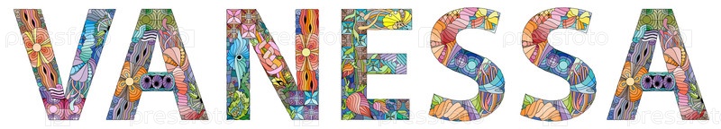 Ручная иллюстрация женского имени Ванессы для футболки и других украшений