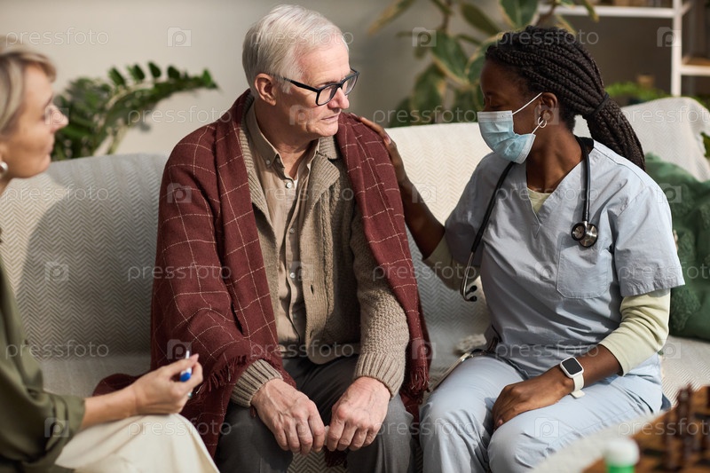 Мужчина получил утешение от молодой чернокожей медсестры во время домашнего посещения