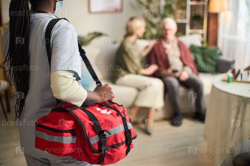 Чернокожая фельдшерка прибывает, чтобы помочь молодому пожилому человеку с дочерью