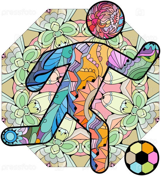 Футбольная икона на мандале олимпийский вид спорта абстрактный рисунок рукой