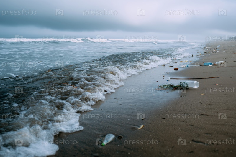 Загрязнение океана, мусор на берегу моря