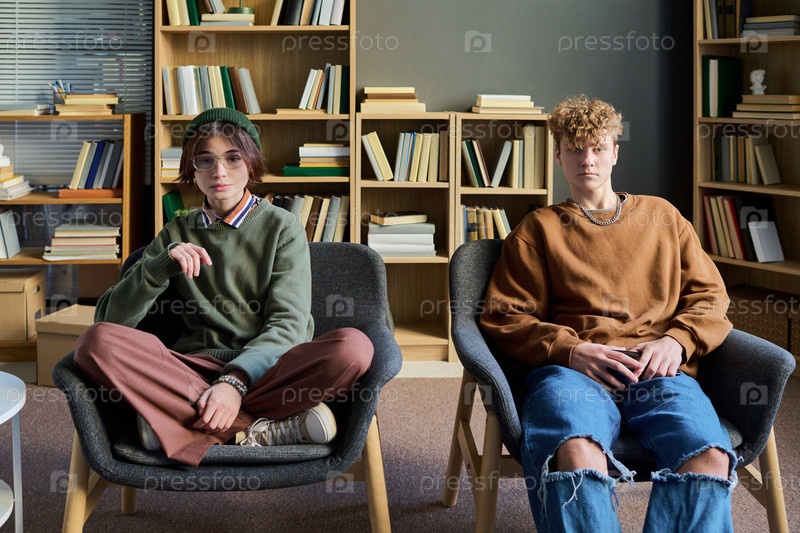 Две подростки, сидящие в групповой сессии терапии в современной консультационной комнате