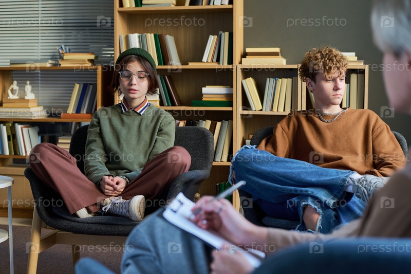 Подростки, участвующие в групповом сеансе терапии с слушающим консультантом