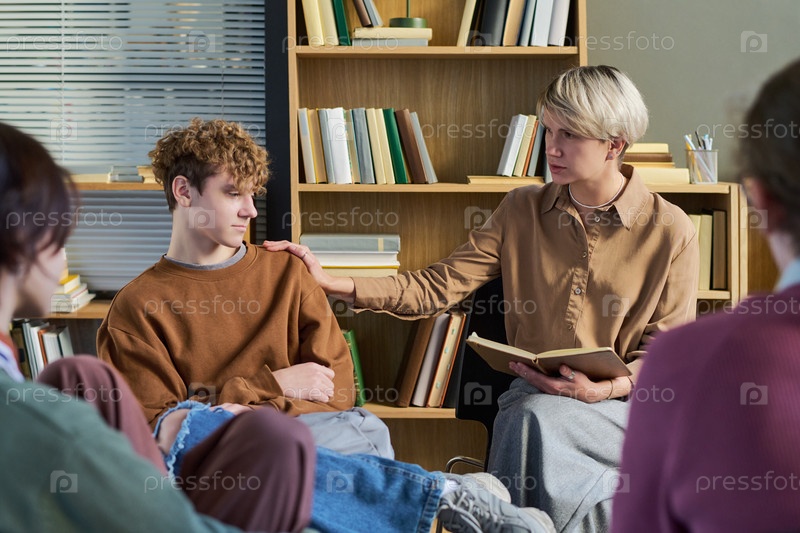 Разнообразная группа подростков и молодых людей, участвующих в сессии групповой терапии