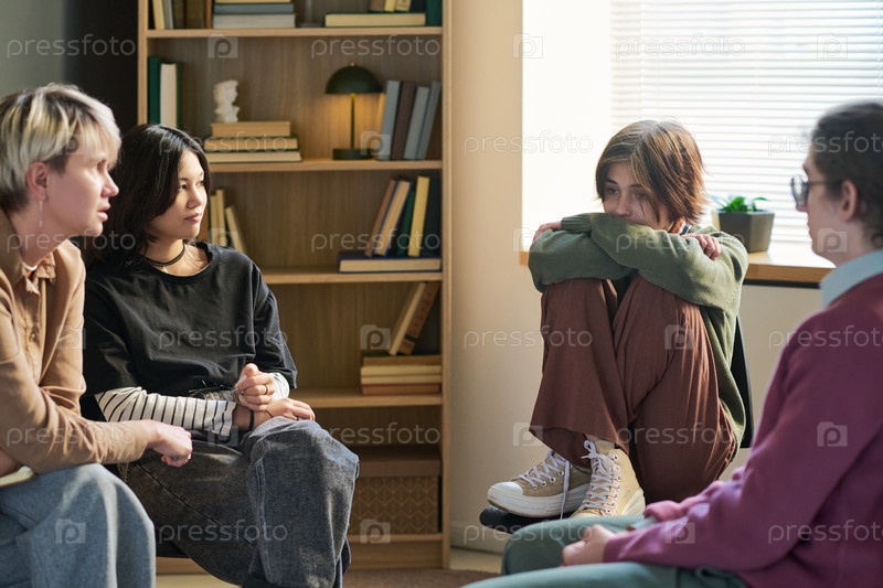 Разнообразные молодые люди участвуют в групповых сеансах терапии и делятся эмоциями