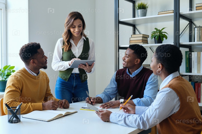 Мультиэтнические молодые люди сотрудничают во время деловой встречи в офисе