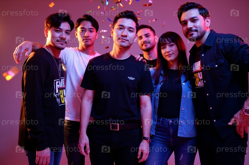 Группа молодых мультиэтнических взрослых, празднующих вместе на вечеринке в помещении