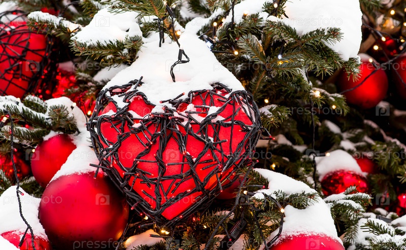 Праздничный фон с одним красным сердцем, завернутым в гирлянды вроде шипов. праздничные украшения. день святого Валентина. любовь