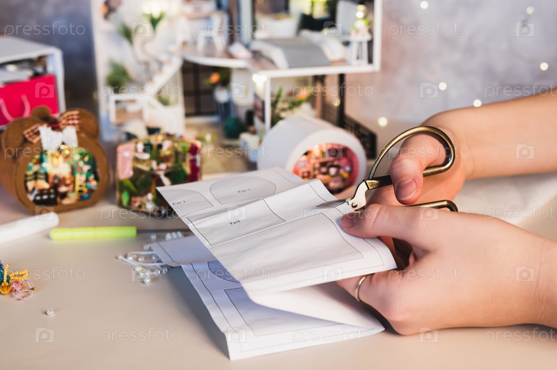 Девочка вырезает из коробки кусок бумаги для создания узора