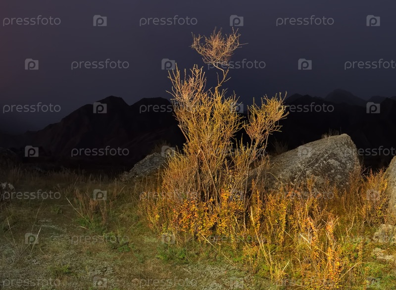 Юг Западной Сибири, Алтайские горы.Осенняя лунная ночь в каменной долине горной реки Катун недалеко от деревни Иния