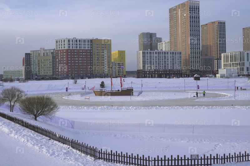 Зимний городской пейзаж снежного Екатеринбурга