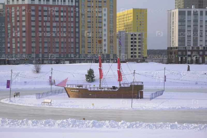 Зимний городской пейзаж снежного Екатеринбурга
