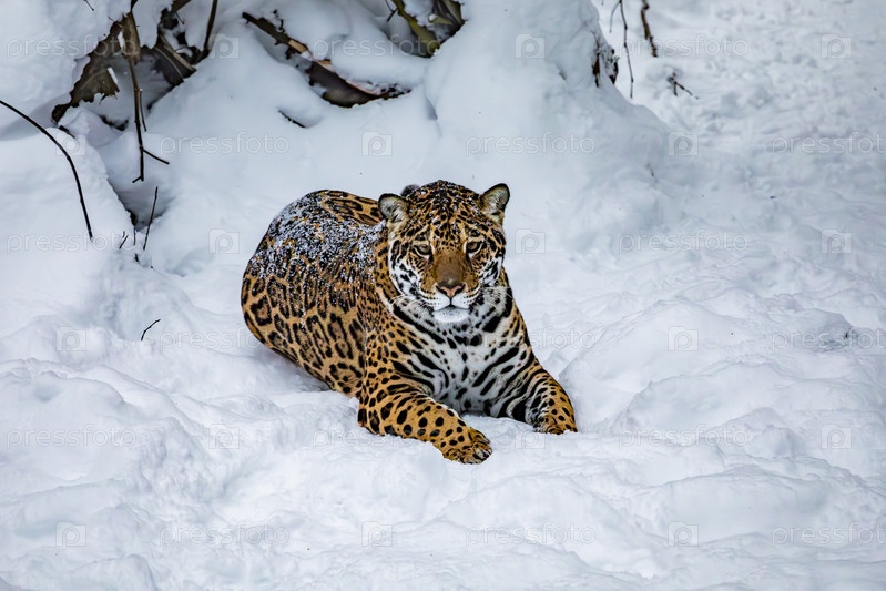 Ягуар в лесу зимой