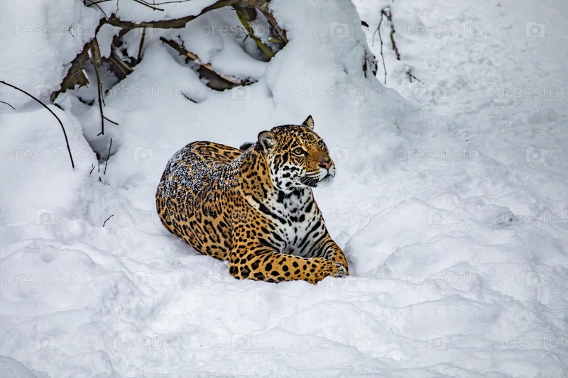 Ягуар в лесу зимой