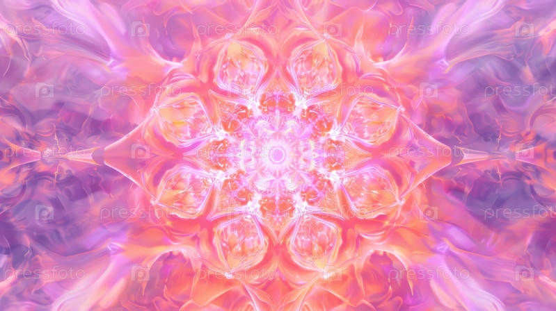 Абстрактная неоновая мандала, сформированная из текущих жидких форм, светит мягкими пастельными тонами и идеально подходит для медитативных визуальных эффектов, духовных концепций дизайна и современного цифрового искусства