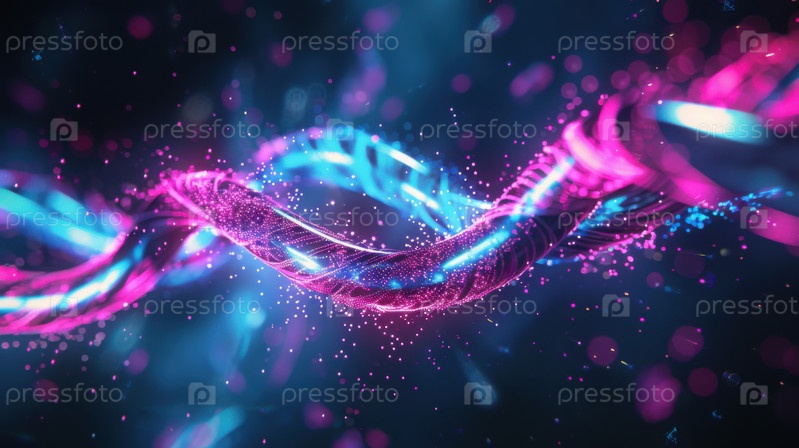 Светящаяся неоновая спираль плавает в темноте, предназначенная для технологических концепций, темы визуализации данных и современной научной коммуникационной графики